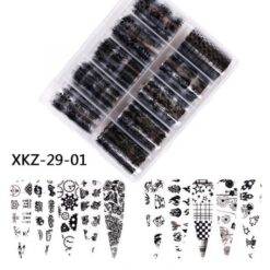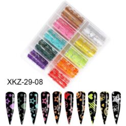 10 cuộn 100x4cm Giấy bạc chuyển móng tay thiết kế bướm XKZ-29