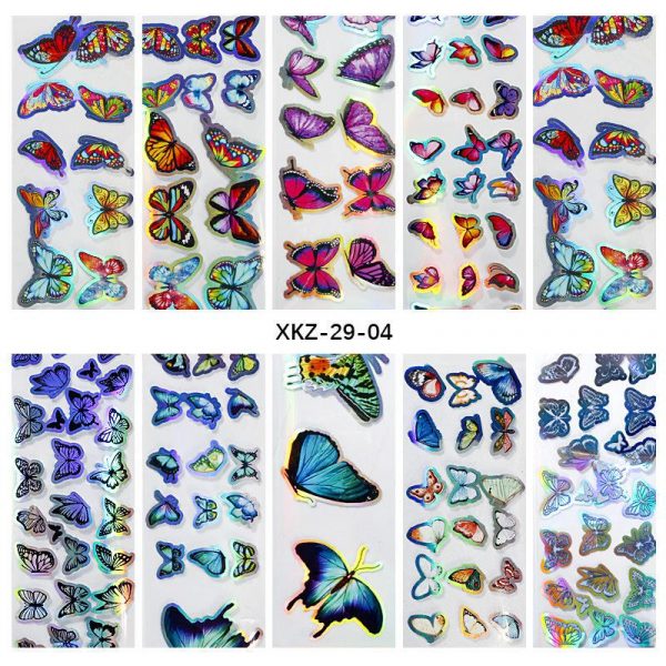 10 cuộn 100x4cm Giấy bạc chuyển móng tay thiết kế bướm XKZ-29