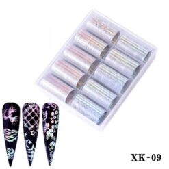 10 cuộn Giấy bạc chuyển móng tay 100x4cm để trang trí nghệ thuật làm móng XK01-XK10