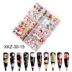10 cuộn 4x100cm Giấy bạc chuyển móng tay thiết kế hỗn hợp XKZ-30