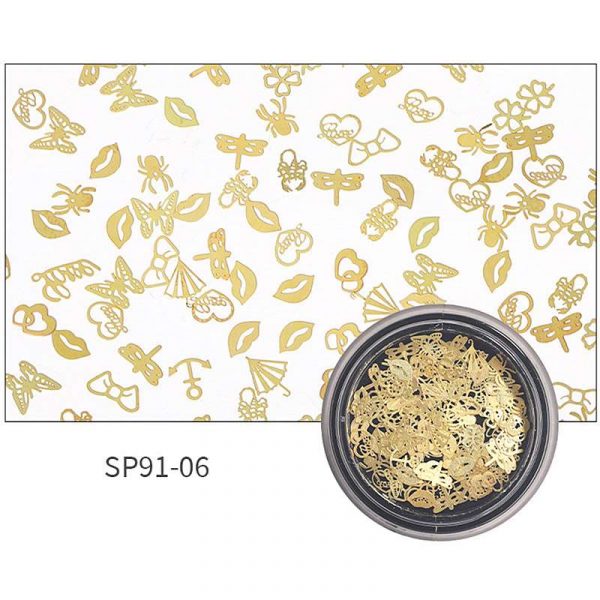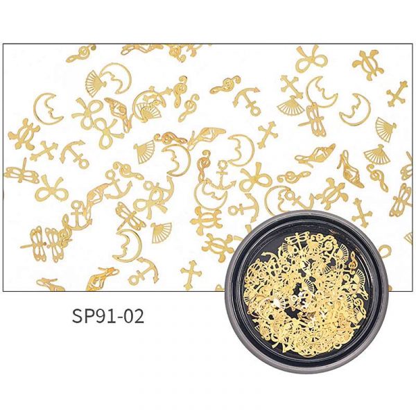 100PCS Phụ kiện trang trí móng tay kim loại siêu mỏng hỗn hợp dành cho nghệ thuật trang trí móng tay SP Series