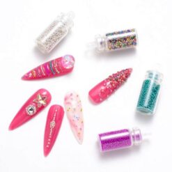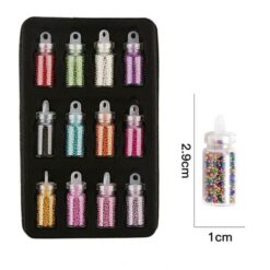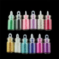 12 chai hạt pha lê Caviar nhiều màu hạt siêu nhỏ để trang trí nghệ thuật móng tay 3D