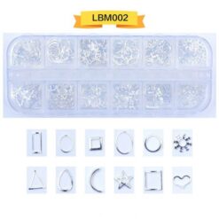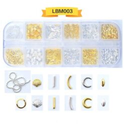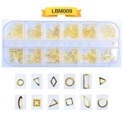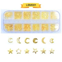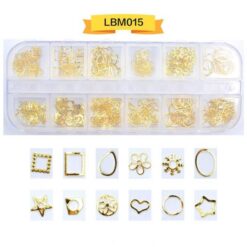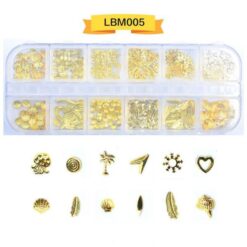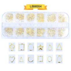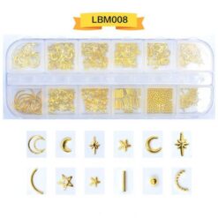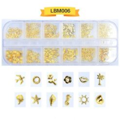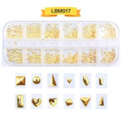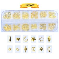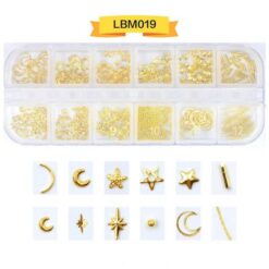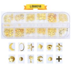 12 ô đóng gói, đinh tán nghệ thuật móng tay bằng kim loại, đinh tán móng tay bằng hợp kim có bánh xe LBM01-LBM19