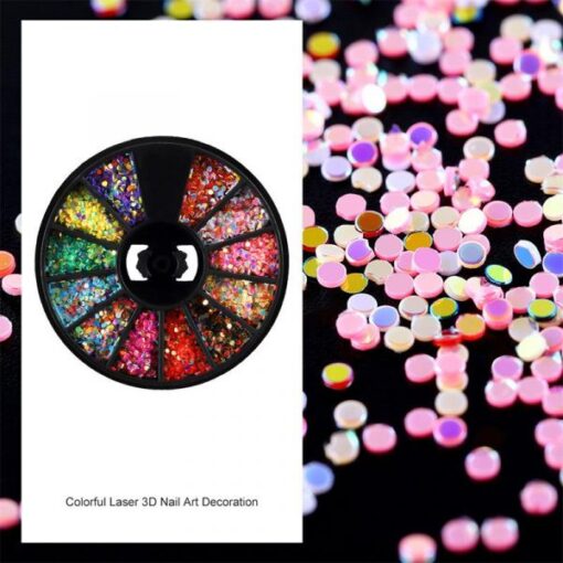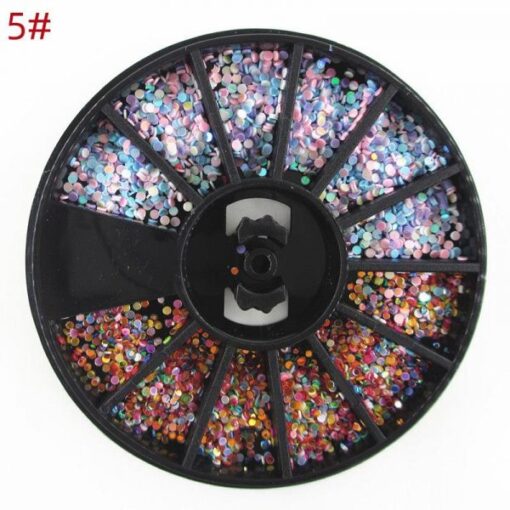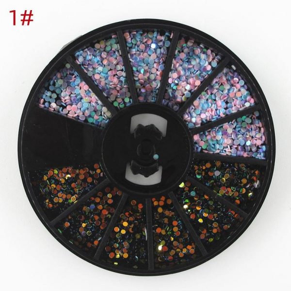 1mm kim sa nghệ thuật làm móng 3D pha trộn nhiều màu kim sa tròn nhiều màu dạng bánh xe