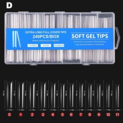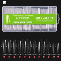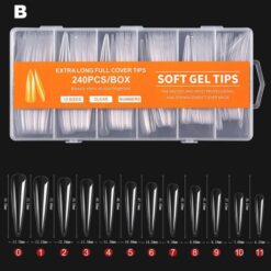 - Mỗi bộ móng XXL siêu dài này bao gồm 1 hộp nhựa + 240 móng giả (12 kích cỡ, 20 chiếc mỗi cỡ).