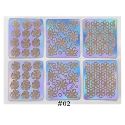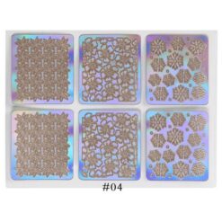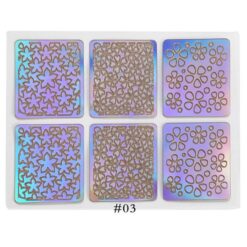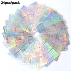 24PCS mỗi bộ thiết kế hỗn hợp Holo Miếng dán móng tay bằng nhựa vinyl bạc rỗng 3D
