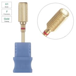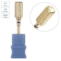 Mũi khoan móng tay hợp kim vonfram cán dài 3/32″ có đầu cắt tròn, nòng lớn phủ lớp phủ vàng – Model H1