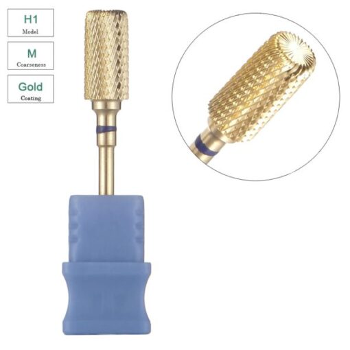 Mũi khoan móng tay hợp kim vonfram cán dài 3/32″ có đầu cắt tròn, nòng lớn phủ lớp phủ vàng – Model H1