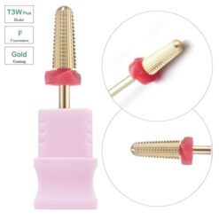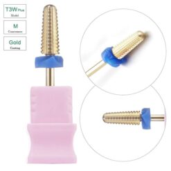 Mũi khoan móng tay cacbua vonfram cắt thẳng hình trụ nhỏ 3/32” phủ lớp phủ vàng – Mẫu T3W Plus
