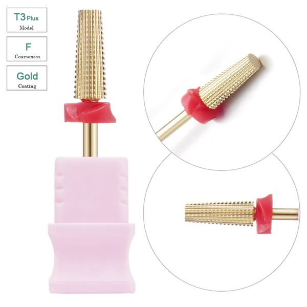 Đặt mua Mũi khoan móng tay cacbua vonfram cắt thẳng hình trụ thon 3/32” phủ lớp phủ vàng – Mẫu T3 Plus