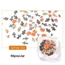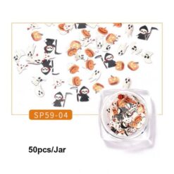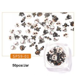 50 cái/Hũ Tấm bột gỗ họa tiết nghệ thuật móng tay 3D phong cách Halloween SP59 01-12