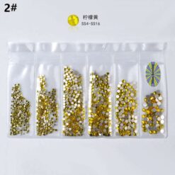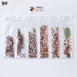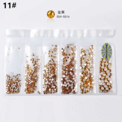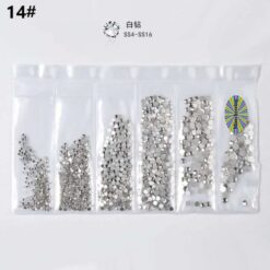 - Mixed Sizes of shiny rhinestones in separate grids of the bag provided