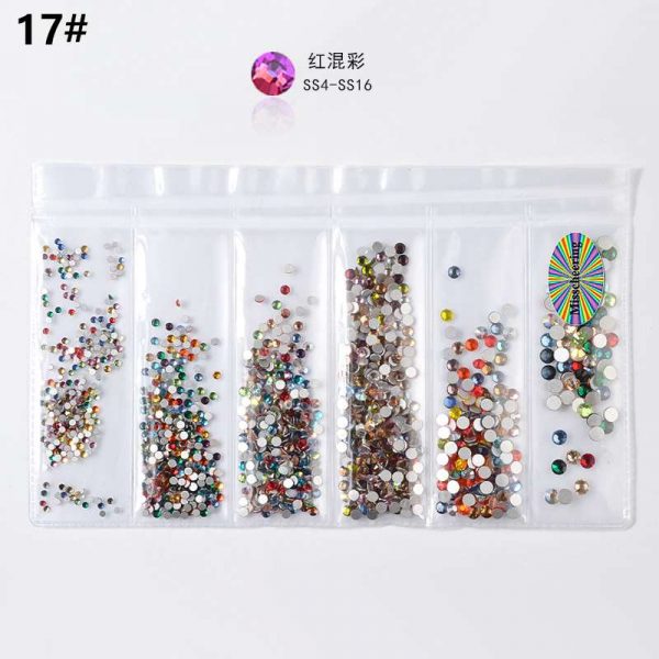 - Mixed Sizes of shiny rhinestones in separate grids of the bag provided