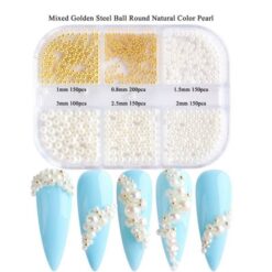 6 lưới hỗn hợp kích thước của ngọc trai tròn nguyên hạt để trang trí nghệ thuật móng tay