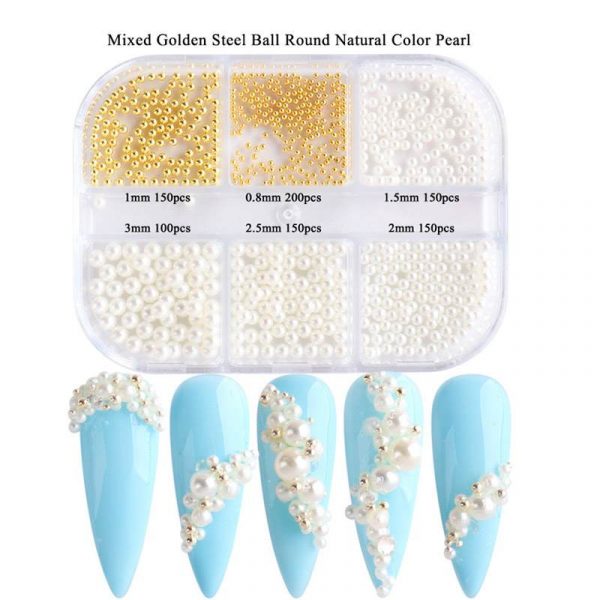 Đặt mua 6 lưới hỗn hợp kích thước của ngọc trai tròn nguyên hạt để trang trí nghệ thuật móng tay