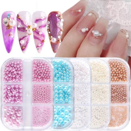 6 lưới hỗn hợp kích thước của ngọc trai tròn nguyên hạt để trang trí nghệ thuật móng tay
