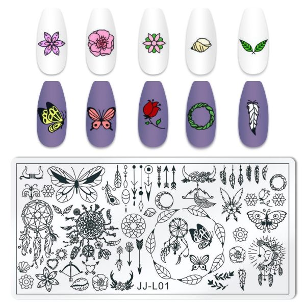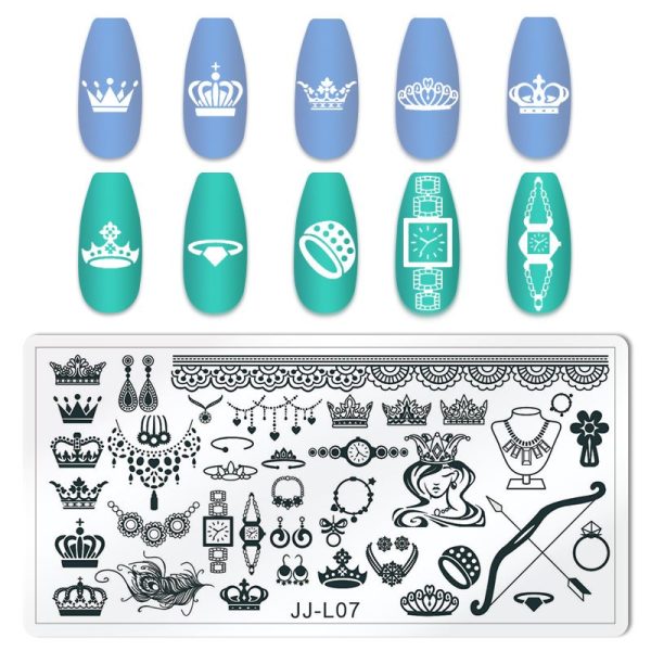 Đặt mua Tấm dập hình móng tay 6x12cm Tấm khuôn móng tay bằng thép không gỉ Tấm hình ảnh JJ-L01~JJ-L13