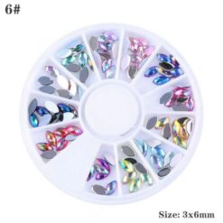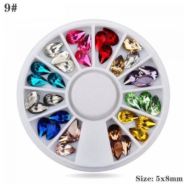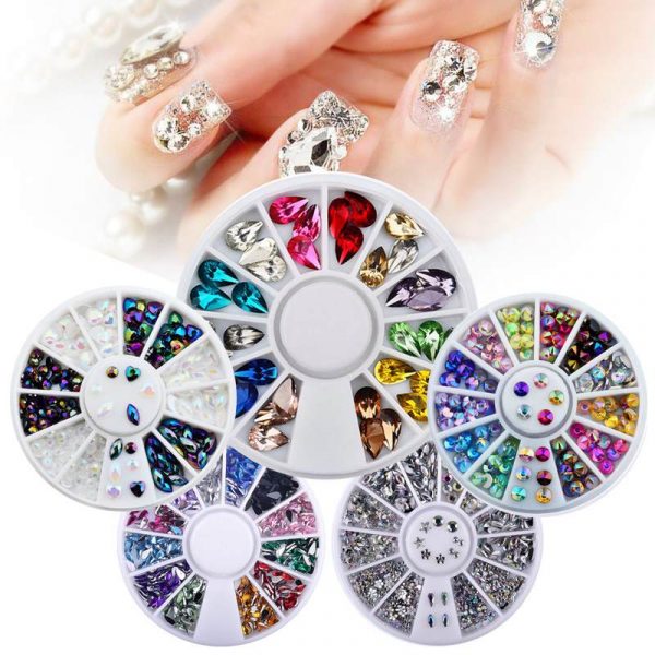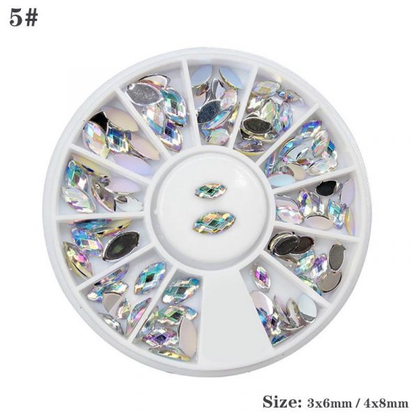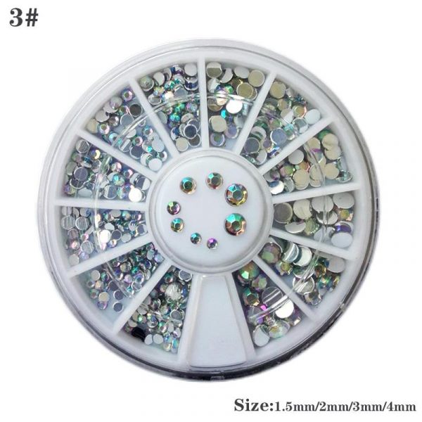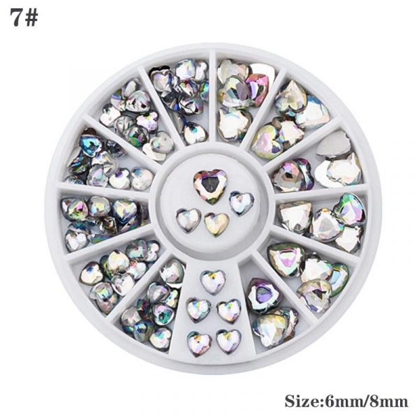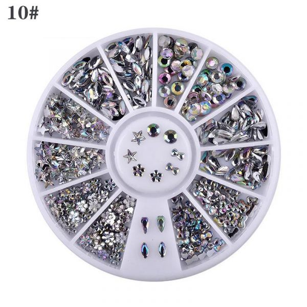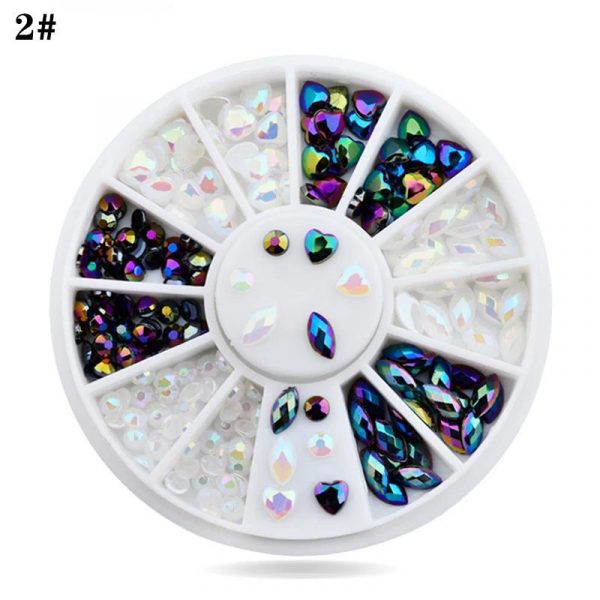 - Varied shapes of AB color shiny rhinestones in separate chambers of the wheel box provided