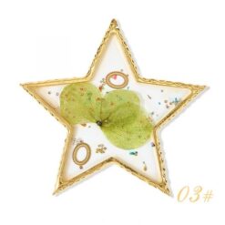 - Được làm từ hoa khô, mảnh vỏ sò và các phụ kiện khác được kết hợp với keo trong suốt.